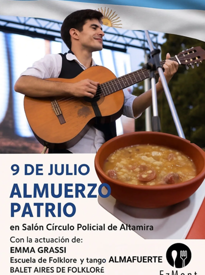 ALMUERZO PATRIO con show en vivo de EMMA GRASSI, Escuela de Folklore y Tango ALMAFUERTE y Ballet AIRES DE FOLKLORE.