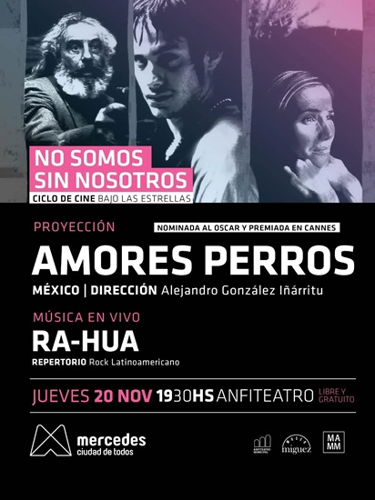 En esta oportunidad se proyectará el film AMORES PERROS, nominado al Oscar y premiado en Cannes y la actuación en vivo de RA HUA con repertorio especial de rock latinoamericano.