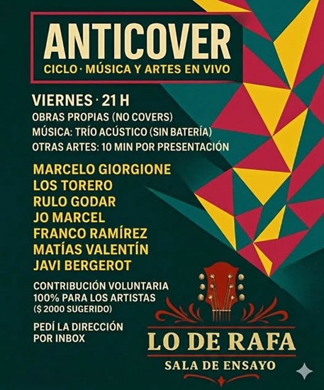 ANTICOVER vuelve para abrir un espacio real donde los artistas puedan compartir composiciones propias en distintas disciplinas: música, literatura, actuación, poesía, performance y más.