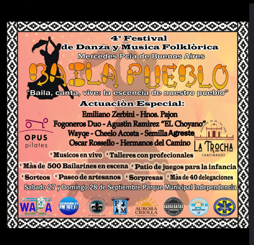 4° Festival de Danza y Música Folklórica BAILA PUEBLO, para bailar, cantar y vivir la esencia de nuestro pueblo.