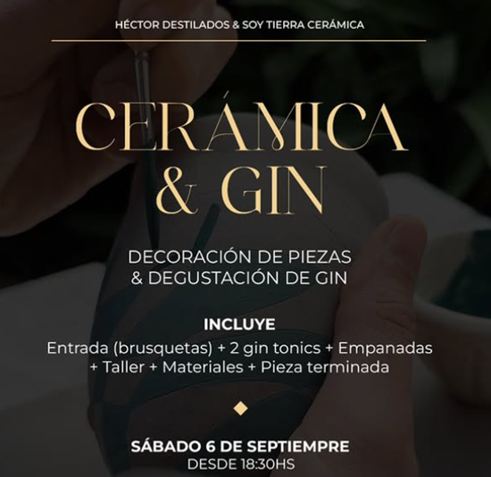 CERAMICA & GIN primera edición, para compartir un atardecer en el taller decorando piezas, con una propuesta gastronómica especial y probando los sabores del gin.