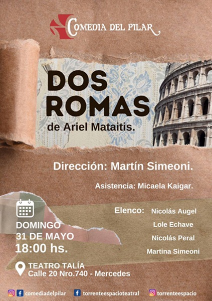 DOS ROMAS es una obra de teatro argentina escrita por Ariel Mataitis y dirigida por Martín Simeoni, interpretada por la Comedia Del Pilar. La trama sigue a Agustín, quien regresa a su pueblo natal tras 20 años en Europa, explorando el reencuentro, los vínculos del pasado y el choque de realidades entre quienes emigraron y quienes se quedaron.
