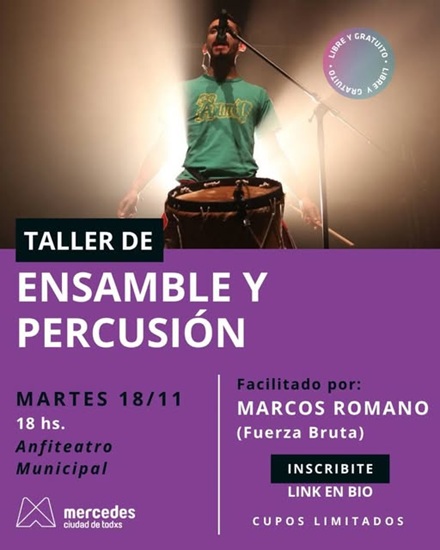 Taller de RITMO y ENSAMBLE DE PERCUSION, facilitado por Marcos Romano (FUERZA BRUTA).