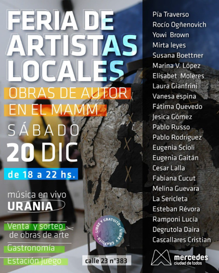 FERIA DE ARTISTAS VISUALES LOCALES con exposición y venta de obras de arte, música en vivo de Urania, Estación Juego para los más pequeños, sorteos, gastronomía y cervecería.