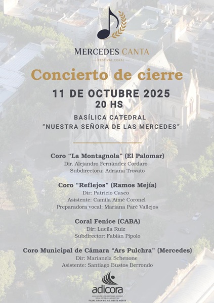 20 septiembre, 2025 SÁBADO 11 DE OCTUBRE – Gratis Concierto clausura del primer... FESTIVAL CORAL «MERCEDES CANTA»