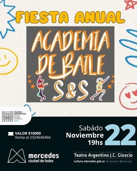 FIESTA ANUAL de la ACADEMIA DE BAILE S & S, presentando su muestra anual, luego de un año de trabajo, pasión y ritmo, para brillar en el escenario.