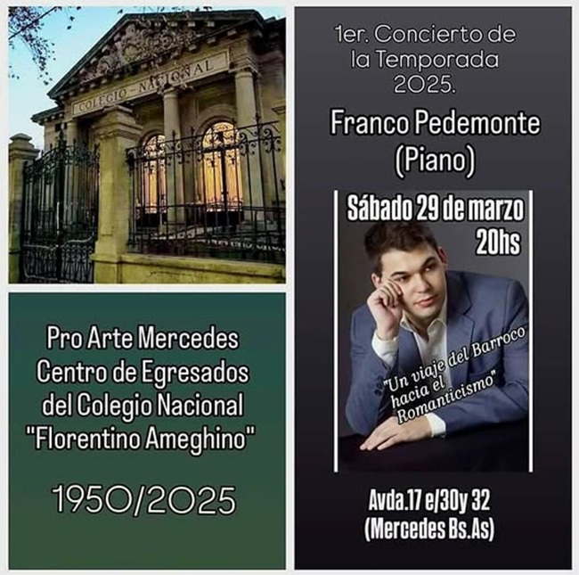 Primer Concierto de la Temporada 2025 a cargo de FRANCO PEDEMONTE en un viaje musical desde el barroco hacia el romanticismo.
