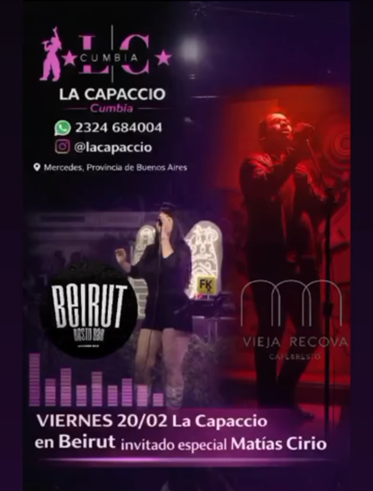 LA CAPACCIO te hace vivir una noche única a pura música, cumbia y energía con un invitado de lujo: MATIAS “El Mono” CIRIO.