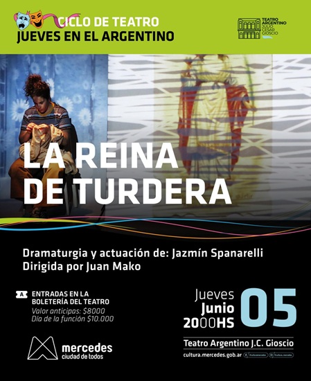 LA REINA DE TURDERA, una obra de dramaturgia y actuación de Jazmín Spanarelli, dirigida por Juan Mako en el marco del Ciclo de Teatro «Jueves en el Argentino»