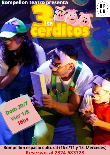LOS TRES CERDITOS… con mucho rock. Una versión divertida y musical del clásico cuento infantil. Esta vez, el lobo no quiere comerse a los cerditos… ¡quiere cumplir su sueño de ser una estrella del rock y tener muchos amigos!. Con canciones rockeras, humor y un mensaje sobre la amistad, los sueños y la importancia de ser uno mismo.