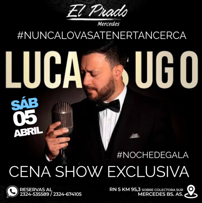 LUCAS SUGO se presenta en una cena show íntima para solo 220 personas, música, baile y la mejor gastronomía.