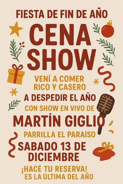 MARTIN GIGLIO, gran noche con una super cena show para pasarla de diez.