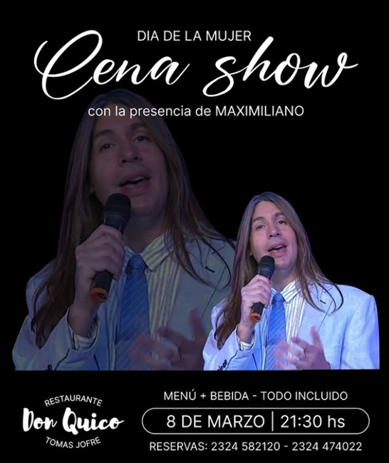 MAXIMILIANO llega a Restaurant Don Quico para compartir su show imperdible, especial por el Día de la Mujer, acompañado de la mejor gastronomía en un ambiente ideal para relajarse y celebrar.