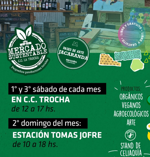 MERCADO SUSTENTABLE y PASEO DE ARTE JACARANDA, productos orgánicos, veganos, agroecológicos, arte y stand de celiaquía.