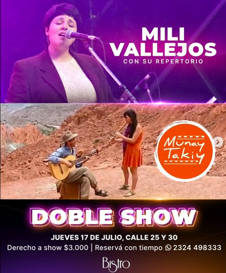 Show doble con la presentación de MILI VALLEJOS y MUNAY TAKIY.