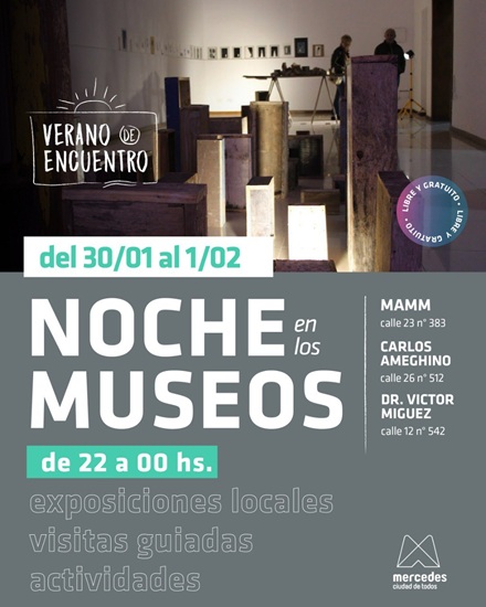 NOCHE EN LOS MUSEOS, este fin de semana el MAMM, el Museo Histórico Dr. Víctor Míguez y el Museo de Cs. Naturales Carlos Ameghino abren sus puertas para disfrutar de: