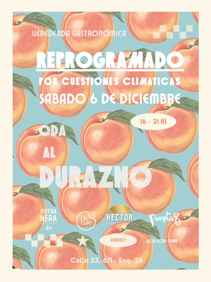 ODA AL DURAZNO, «veredeada gastronómica», una tarde para comer rico, fresco y jugoso, disfrutando de lo mejor que puede ofrecer la temporada en Mercedes: duraznos en su momento más dulce y tentador.