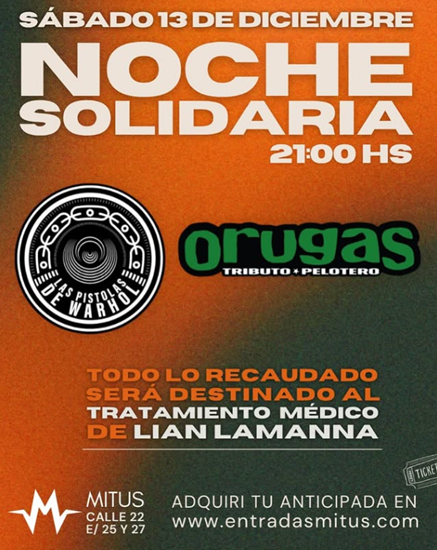 10 diciembre, 2025 SABADO 13 DE DICIEMBRE ORUGAS se presenta en una NOCHE... ORUGAS – NOCHE SOLIDARIA