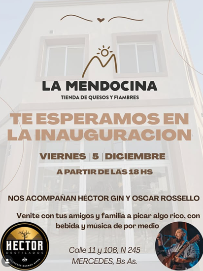 OSCAR ROSELLO se suma a la inauguración de La Mendocina. Para picar algo rico en familia o con amigos, con bebida, música y buena energía de por medio.