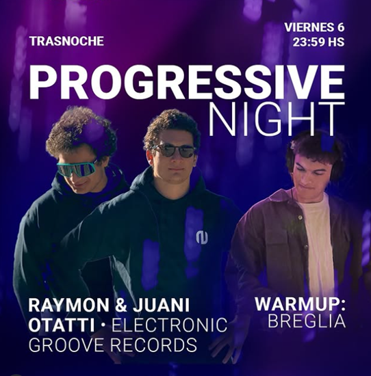 PROGRESSIVE NIGHT con Raymon & Juani Otatti (Electronic Groove Records) y abre la noche Dj Breglia.