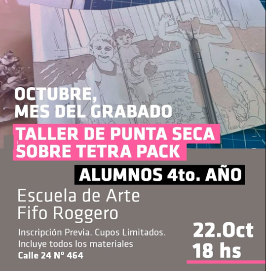 TALLER DE PUNTA SECA SOBRE TETRA PACK, alumnos de 4° año Escuela de Arte Fifo Roggero, en el marco del ciclo Octubre, mes del grabado.