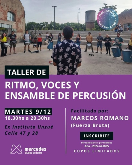 Taller de RITMO, VOCES y ENSAMBLE DE PERCUSIÓN, último encuentro de batucada del año.