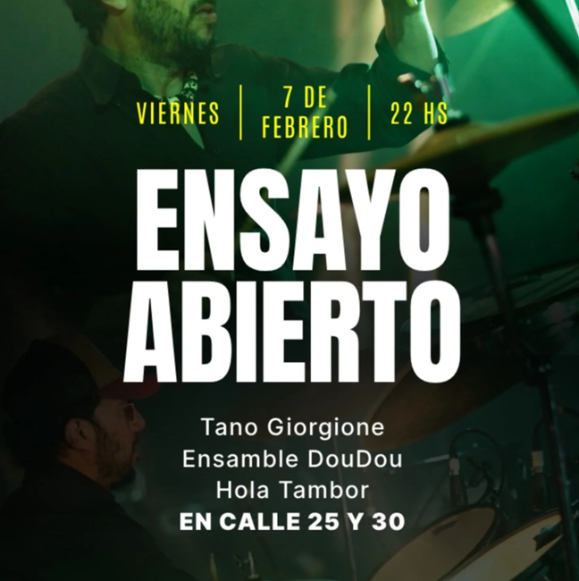 MARCELO GIORGIONE – ENSAYO ABIERTO de percusión, ensamble DouDou, Hola Tambor.