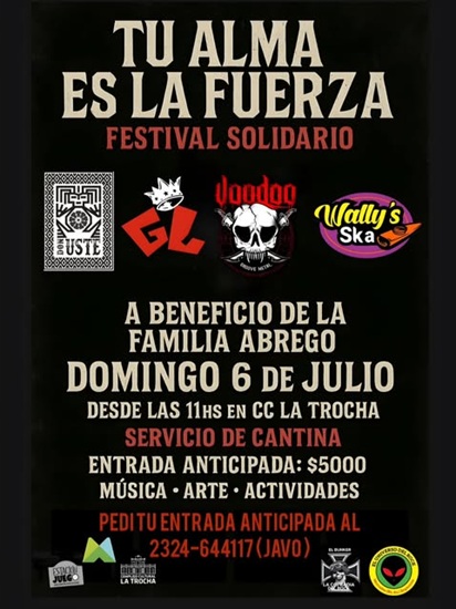 TU ALMA ES LA FUERZA, festival solidario con música, arte y actividades a beneficio de la familia Abrego.