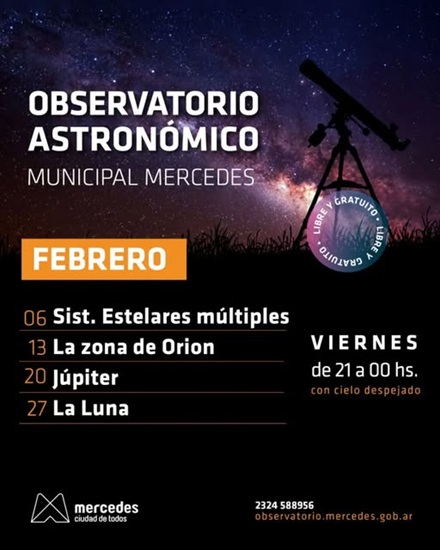 Lugar: Observatorio Astronómico Municipal (Ruta 41 alt. km.241, Mercedes)