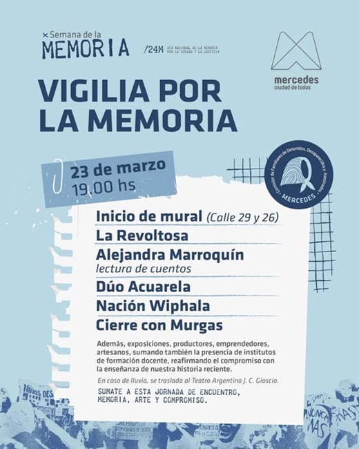 VIGILIA POR LA MEMORIA, jornada de reflexión, encuentro, arte y compromiso de cara al 24 de marzo, Día Nacional de la Memoria, por la Verdad y la Justicia.