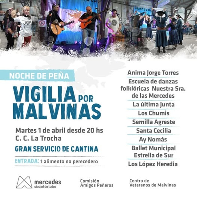 Noche de Peña en la VIGILIA POR MALVINAS, con motivo del Día del Veterano y de los Caídos en la Guerra de Malvinas.