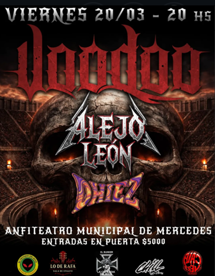 Llega el metal al Anfiteatro con la presentación de VOODOO, acompañados por el gigante ALEJO LEON con su banda y los amigos de DHIEZ.