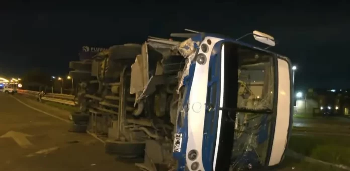 En tanto, se indicó que el micro estaba detenido casi sobre la banquina por un desperfecto mecánico, fue embestido por el camión que transportaba una carga de rollos de acero. A raíz del fuerte impacto, el ómnibus volcó y quedó sobre la autopista, mientras que el camión terminó a unos 200 metros más adelante, con la cabina completamente rota.