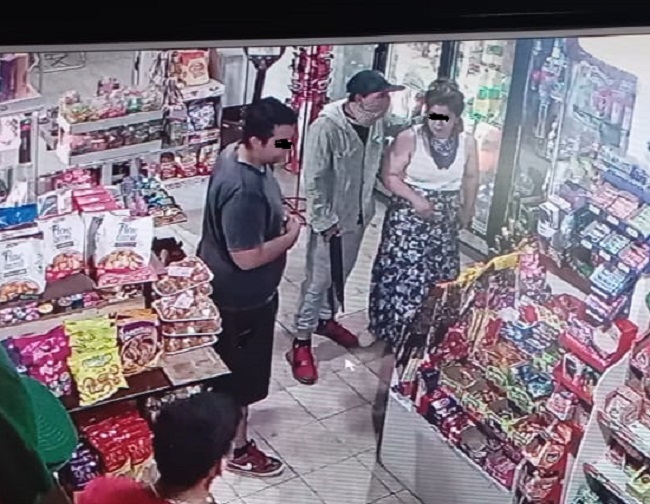 Como puede verse en la foto de la cámara de seguridad del comercio, «El Luciano» se tapó la cara con un especie de pañuelo y usando gorra, con un arma larga recortada.