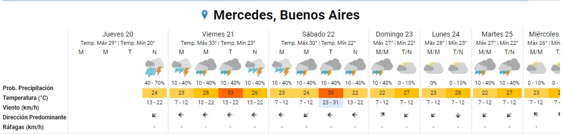 Tras el alerta durante la tarde de hoy jueves, el Servicio Meteorológico Nacional volvió a emitir un alerta amarillo sobre posibles tormentas durante la noche de hoy de diversas intensidades en Mercedes y la zona, alguna de ellas puede ser de fuerte intensidad, estar acompañada por ráfagas fuertes y con la ocasional caída de granizo. Por tal motivo, se eleva a ‘Amarillo’ el Nivel de Atención del Riesgo por tormentas fuertes con ráfagas».