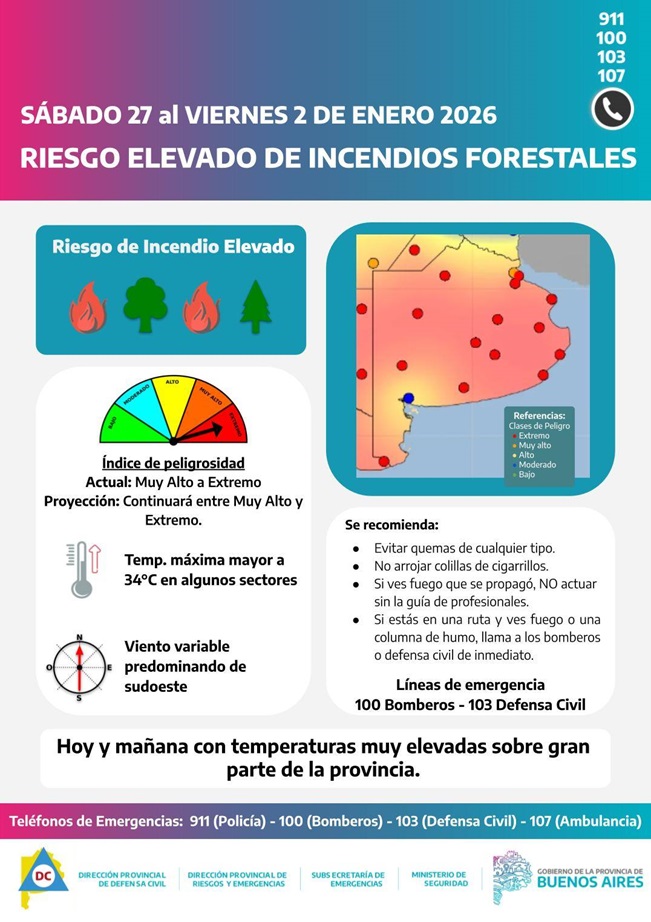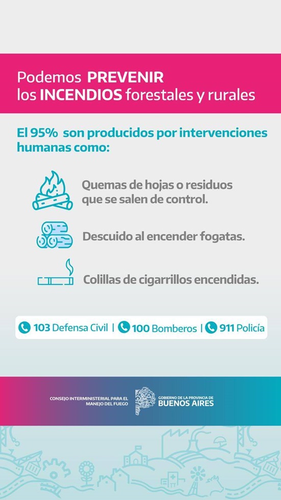 Desde Defensa Civil de la provincia se pide extremar los cuidados por incendios, sobre todo, forestales.