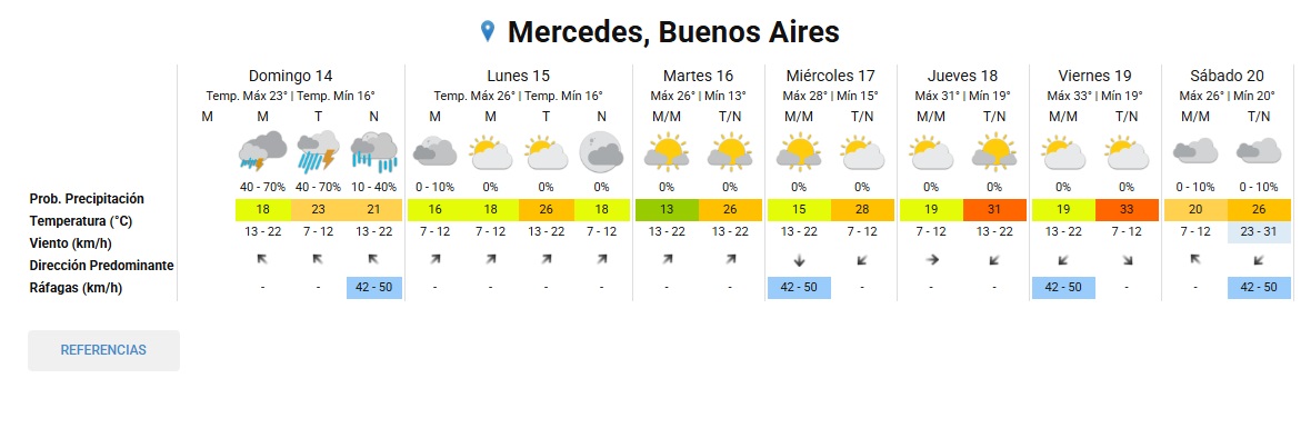 El Servicio Meteorológico Nacional emitió un nuevo alerta meteorológico para la tarde de hoy domingo en Mercedes y la región.