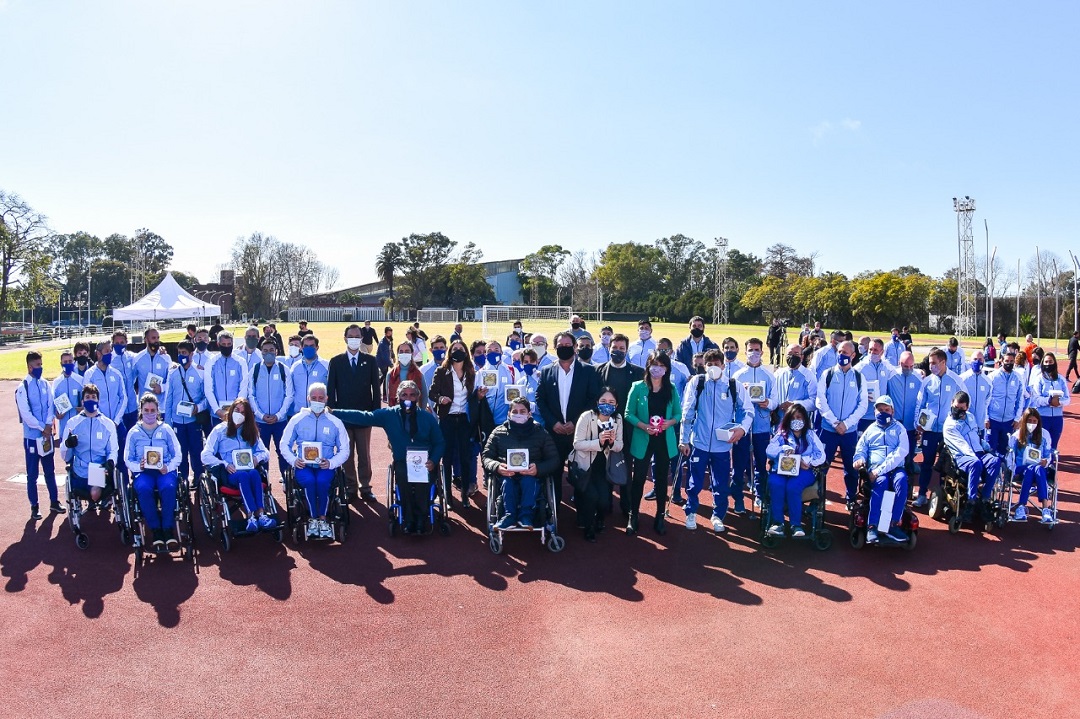 En el acto, Arrondo entregó a cada deportista una bandera argentina y les expresó unas palabras de agradecimiento; “El deporte nos ayuda a construir identidad todos los días. En esta bandera están sus familias, amigos y amigas, están sus amores, sus ciudades y sus provincias que los vieron crecer. Y en esta bandera también están los millones de argentinos y argentinas que vamos a estar alentándolos y alentándolas, deseando que disfruten de esta experiencia”