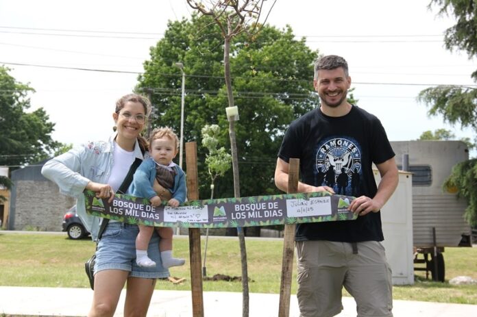 En esta ocasión, un nuevo “Bosque de los Mil Días” fue construido en el barrio Favaloro. La particularidad de esta propuesta radica en su profunda conexión simbólica: cada árbol plantado lleva el nombre de un niño o niña nacido en Mercedes e incorporado al programa. Familias de los recién nacidos participan activamente de la plantación, asumiendo el compromiso de cuidar y ver crecer ese ejemplar, un acto que trasciende lo ambiental para convertirse en una metáfora del crecimiento de su propio hijo o hija.