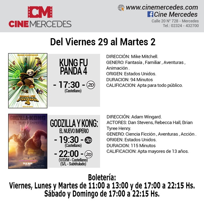 Esta es la cartelera del Cine Mercedes desde el viernes 29 de marzo al martes 2 de abril.