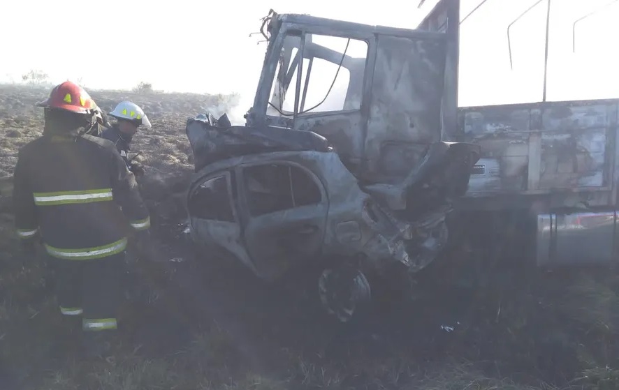 El auto de menor porte se incendió y las víctimas quedaron atrapadas. Se requirió la presencia de bomberos y de una ambulancia local que procedieron a retirar el vehículo hacia una banquina para liberar el tránsito.