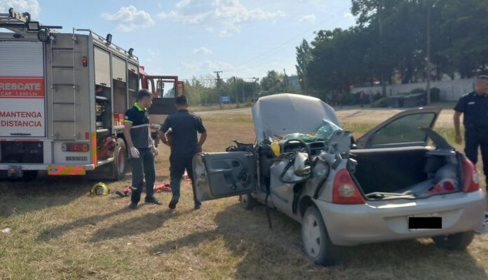 Un auto chocó con un camión. Una mujer sufrió heridas de consideración y quedó atrapada en el coche. Para sacarla del habitáculo, los bomberos debieron cortar el techo.