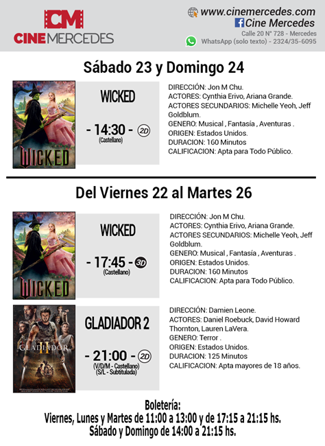 Esta es la cartelera del Cine Mercedes desde el viernes 22 al martes 26 de noviembre.