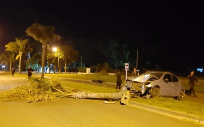 El camino del automóvil, finalizó al dar contra un árbol, y terminó volteando la palmera contra la que colisionó, tal como se puede observar en la foto revelada en esa localidad.