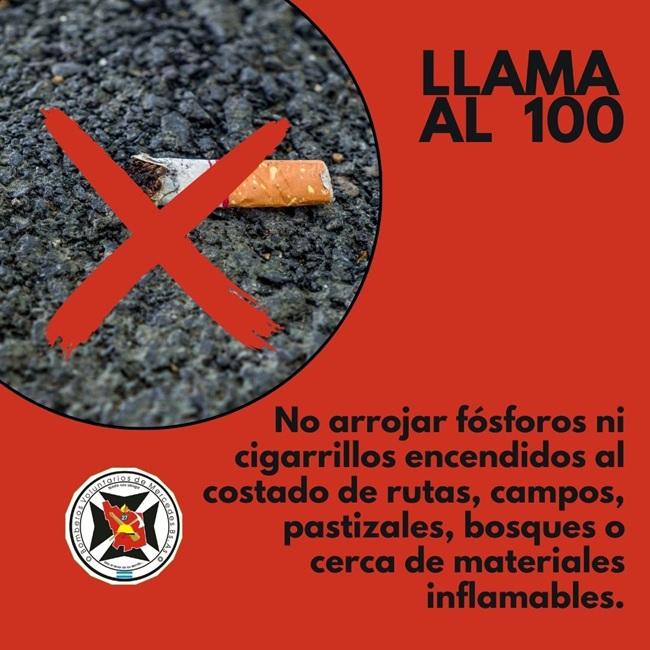 La segunda, más remanida en el tiempo, es sobre no tirar fósforos o colillas de cigarrilos al costado de la ruta, en pastizales o en campos o cerca de material inflamable.