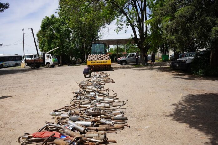 La Secretaría de Seguridad procedió a la destrucción de más de 200 caños de escape de motocicletas. Fue en el predio del ex Martín Rodríguez. Fueron todos secuestrados en operativos de prevención y seguridad.