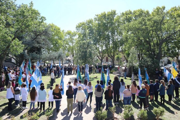 En la Plaza Balcarce de Suipacha se realizó el Acto Oficial, donde tras el izamiento de banderas y el Himno nacional tomó la palabra Virginia Parada, miembro de Hijos de Veteranos de Malvinas de Suipacha, brindando su homenaje a los soldados. Luego lo hizo el Intendente, y enseguida Silvia Braghi, Presidente del Honorable Concejo Deliberante, quien le entregó a la Inspectora de Nivel Primario Sandra Jara y al Inspector Jefe Distrital, Jorge García De León, una copia del decreto que declara de Interés legislativo y cultural el proyecto educativo «Veteranos de Malvinas Ayer y Hoy. A 40 años de la guerra de Malvinas.