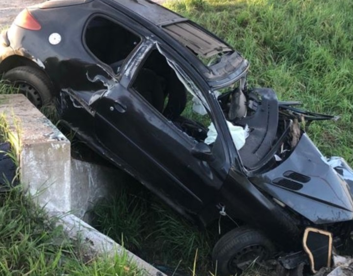 El automóvil de Siga, por cuestiones que se tratan de establecer, cruzó de carril, e impacto fuertemente contra una alcantarilla que está al costado de la ruta 5.