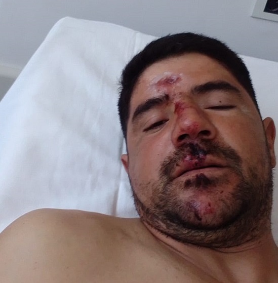 Su esposa lo llevó al hospital, quedó internado por la fractura de tres costillas y perforación en el pulmón.