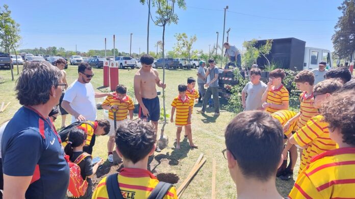 Se realizó una nueva jornada de plantación en una institución deportiva de la ciudad. En esta ocasión fue el Club de Rugby. Es en el marco de las acciones de forestación, cuidado ambiental y plantaciones urbanas que viene desarrollando ampliamente la Dirección de Espacios Verdes.